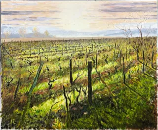 Via Francigena 3 - Alignement de cyprès ciel d'orage -