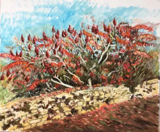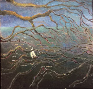 Voilier vu à travers la ramure au-dessus d'une falaise