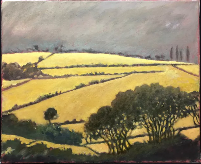 Inspiré par le paysage vu depuis Culles-les-Roches. Date juillet 2018 identifiant 295 Dimension 46x38