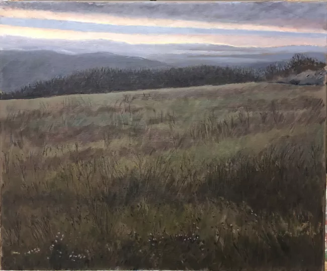 Censé traduire la lumière de l'aube, ou, celle d'un matin d'hiver. Date octobre 2020 identifiant 403 Dimension 64,5 x 54