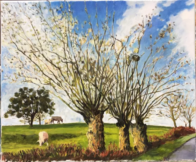 En repassant sur cette route je regarde souvent ces trois arbres. Ils ne sont jamais aussi intéressants qu'ils l'avaient été ce matin-là. Date janvier 2021 identifiant 414 Dimension 55x46