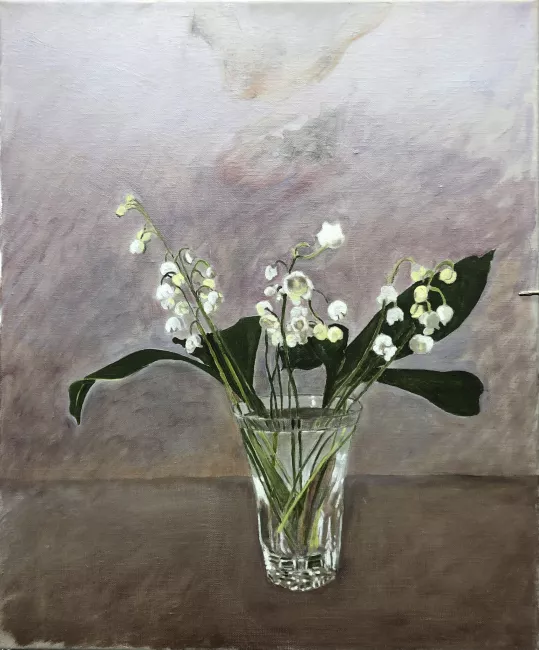 Date mai 2021 identifiant 427 Dimension 46x55 Inspiration J'ai trouvé de l'intérêt à ces quelques brins de muguet juste dans un petit verre de condiment recyclé.