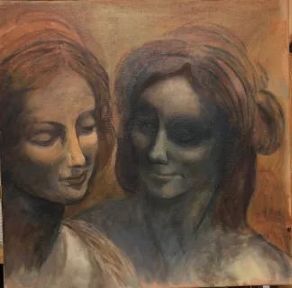 | D'après un dessin de Da Vinci "Sainte Anne, la Vierge et l'Enfant" (les deux visages féminins) |