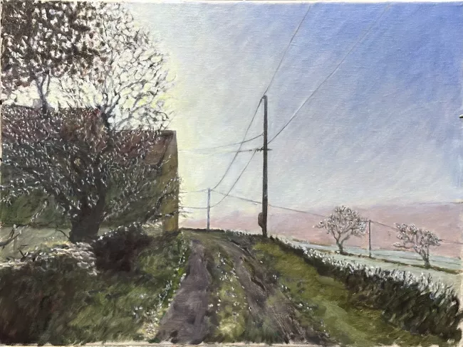 Date décembre 2022 identifiant 511 Dimension 61x46 Inspiration Tentative de traduire : soleil d'hiver, brouillard qui se lève et contre jour.