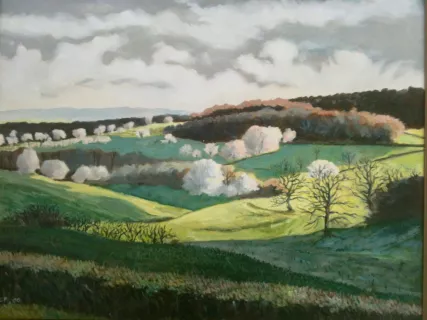 | Paysage de Villeneuve-en-Montagne 71, avec cerisiers en fleurs |
