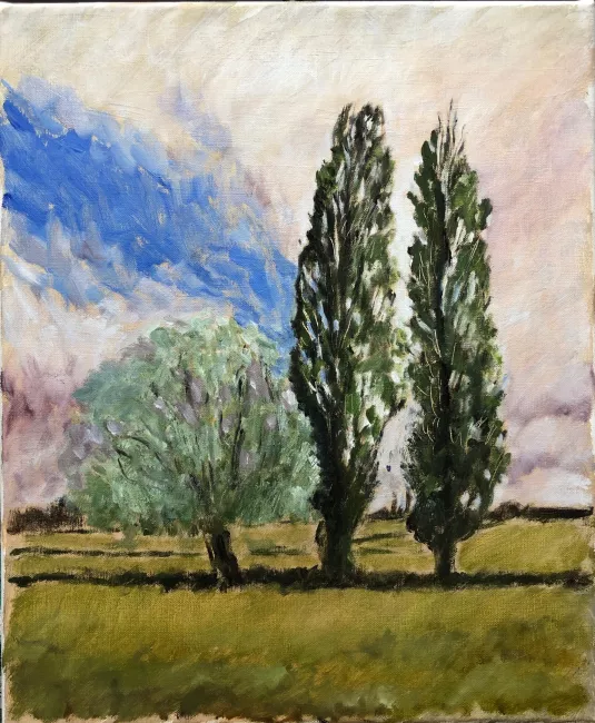 Date juin 2019 identifiant 335 Dimension 38x46 Inspiration J'ai aimé cette bande de ciel bleu qui descendait vers les arbres.