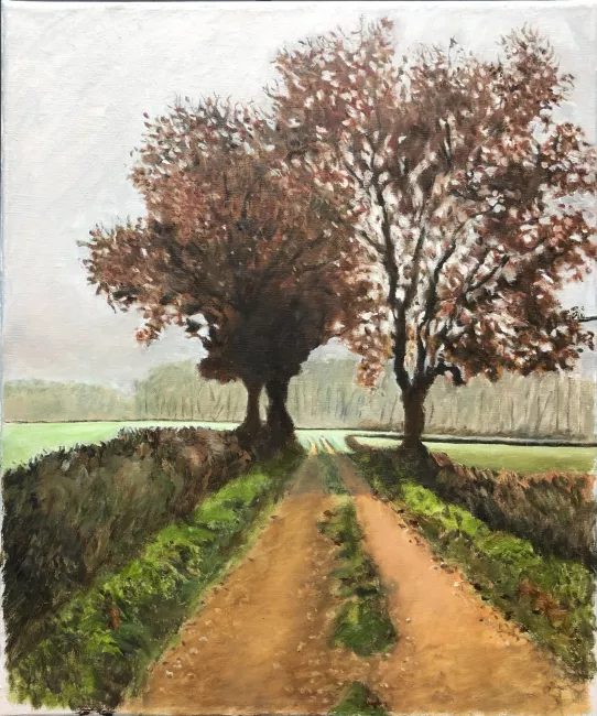 Date novembre 2021 identifiant 461 Dimension 46x55 Inspiration A nouveau une photo ramenée d'une balade dans la côte Chalonnaise est à l'origine de la toile.