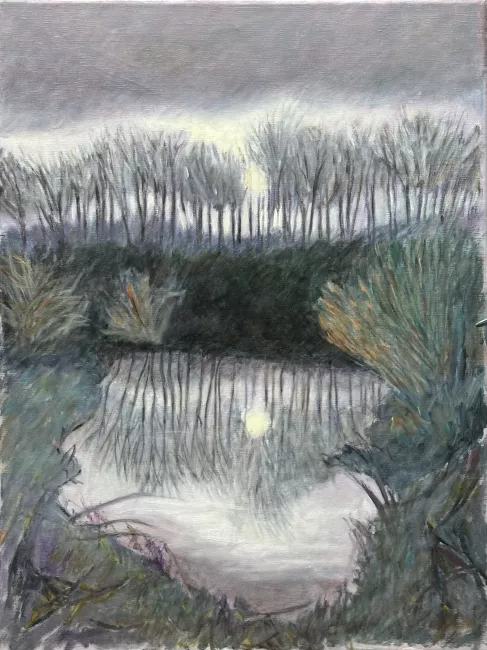 Date janvier 2025 identifiant 607 Dimension 46x61 Inspiration Je m'étais imposé des couleurs froides qui ne m'ont pas simplifié le travail.